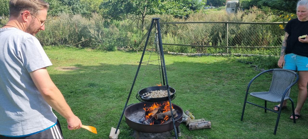 Unsere sanitären Anlagen und die Gemeinschaftsküche sind top gepflegt. Die Küche ist voll ausgestattet und lädt dazu ein, gemeinsam zu kochen oder sich einen Tee oder Kaffee zuzubereiten. Je nach Saison können Sie sich außerdem über frisches Obst und Gemüse aus unserem Garten freuen.