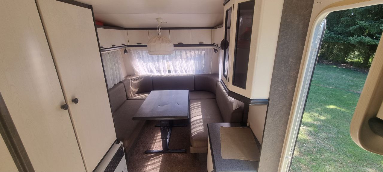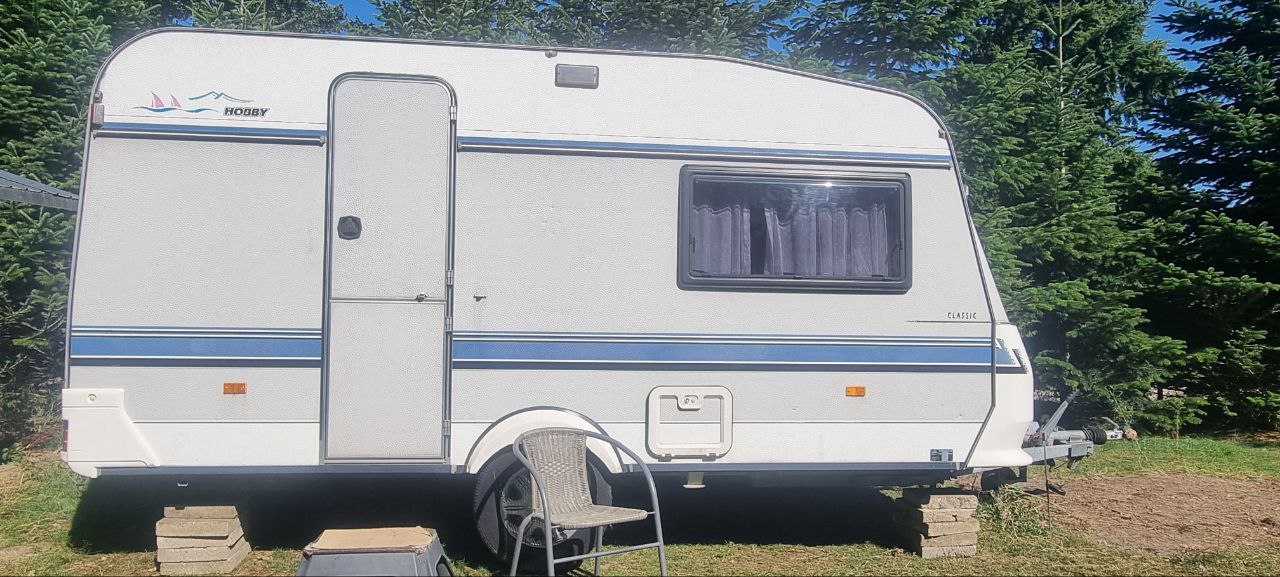 Unser gemütliche kleine Wohnwagen bieten Ihnen die perfekte Ausstattung für einen unvergesslichen Aufenthalt. Der Wohnwagen verfügt über eine kleine Küche mit Drei-Flammen-Gasherd, Spüle und Kühlschrank. Das Bad ist mit einer Toilette und Waschbecken ausgestattet, die Dusche finden Sie in unserem Sanitärbereich. Die bequeme Sitzecke lässt sich im Handumdrehen in ein großzügiges Bett (2,3 x 2,3 m) umwandeln. Für 2 Leute bestens geeignet. Eine Heizung sorgt auch an kühleren Abenden für angenehme Wärme.